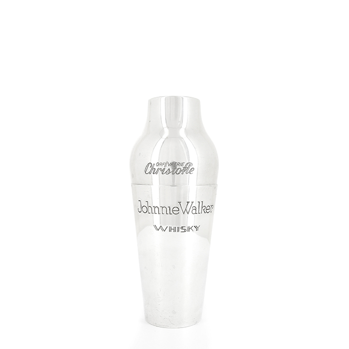 Rare shaker Christofle années 1950 en métal argenté pour la marque de whisky Johnnie Walker, composé de deux parties s'emboitant l'une dans l'autre.