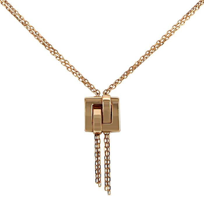 Superbe collier de la collection "Déchainé" en or rose, composé d'un élégant motif carré ajouré, réhaussé de délicates chaines à maillons forçat, retenu par de belles chaines en or rose.