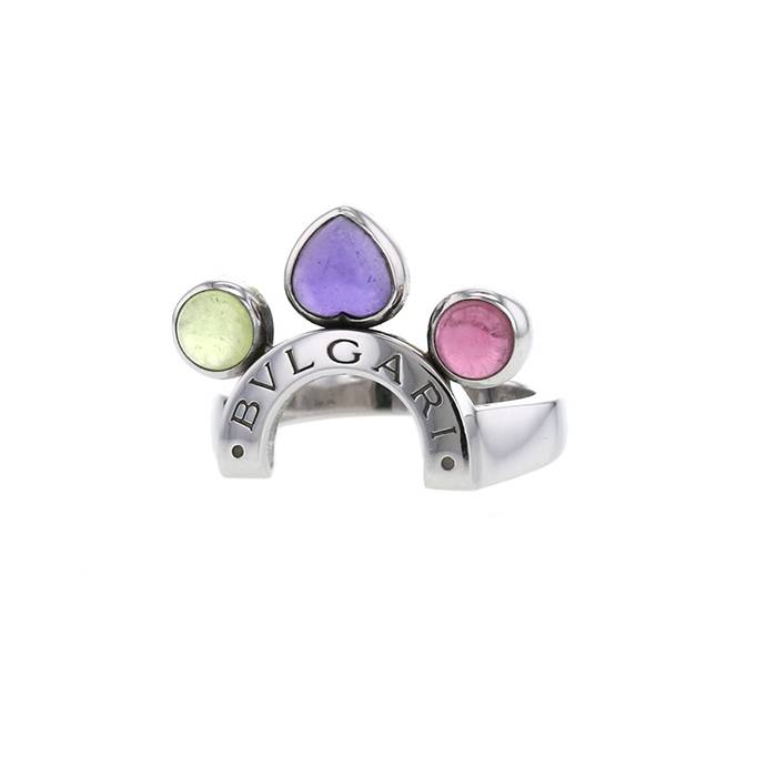 Bague mobile Bulgari en or blanc, améthyste et tourmaline rose et en péridot Ref Collector Square : 34 96 92