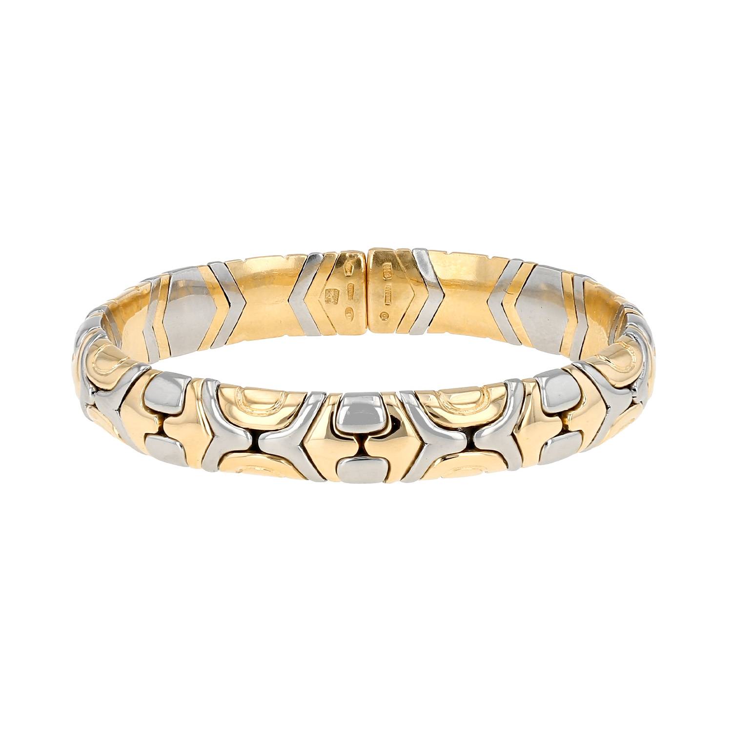 Bracelet semi-rigide Bulgari Parentesi en or jaune et acier, composé d'une succession de motifs géométriques semi-articulés en or jaune, en acier.