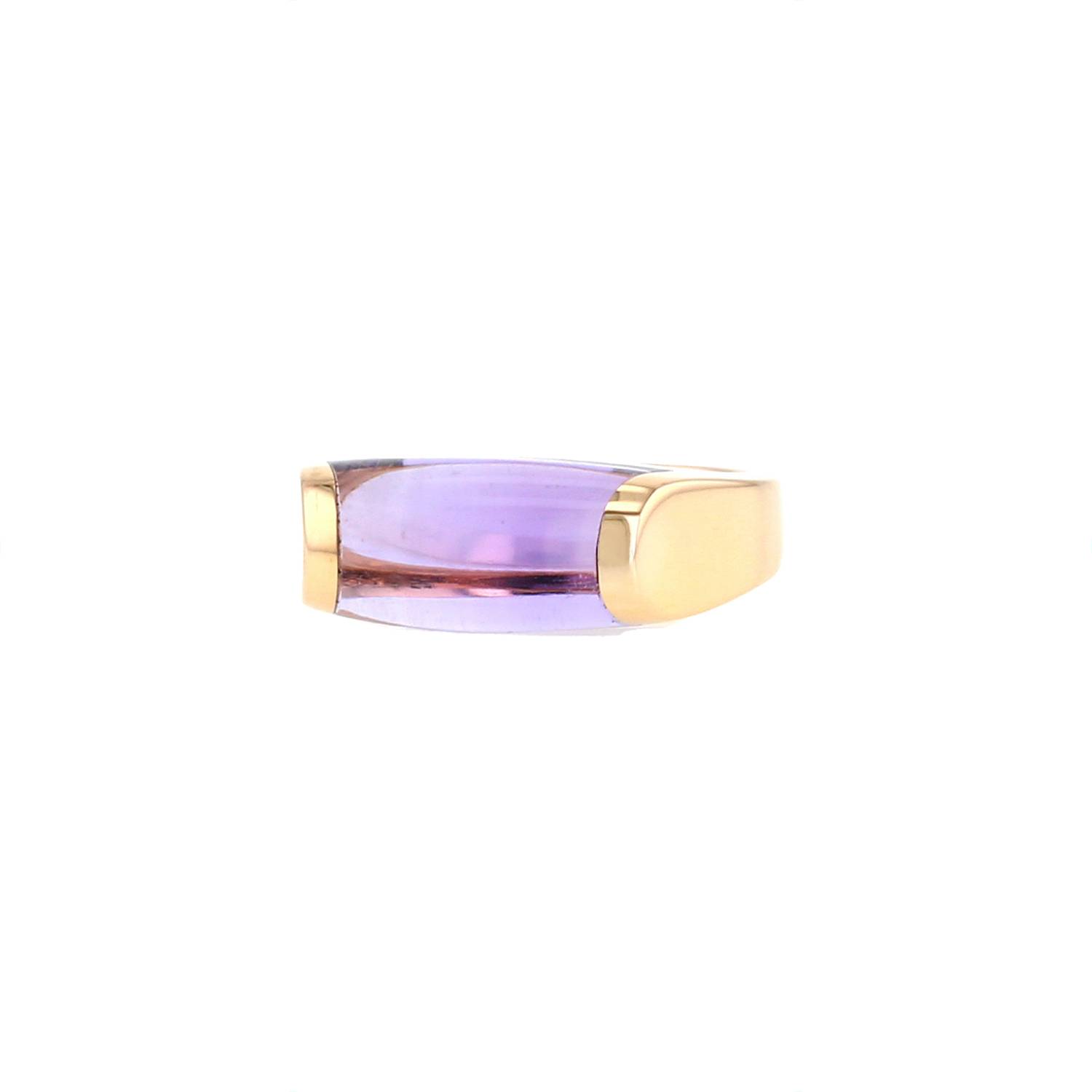 Ravissante bague Bulgari Tronchetto en or rose et améthyste, composée d'une importante améthyste semi-cylindrique de taille cabochon, réhaussée d'une élégante monture lisse.