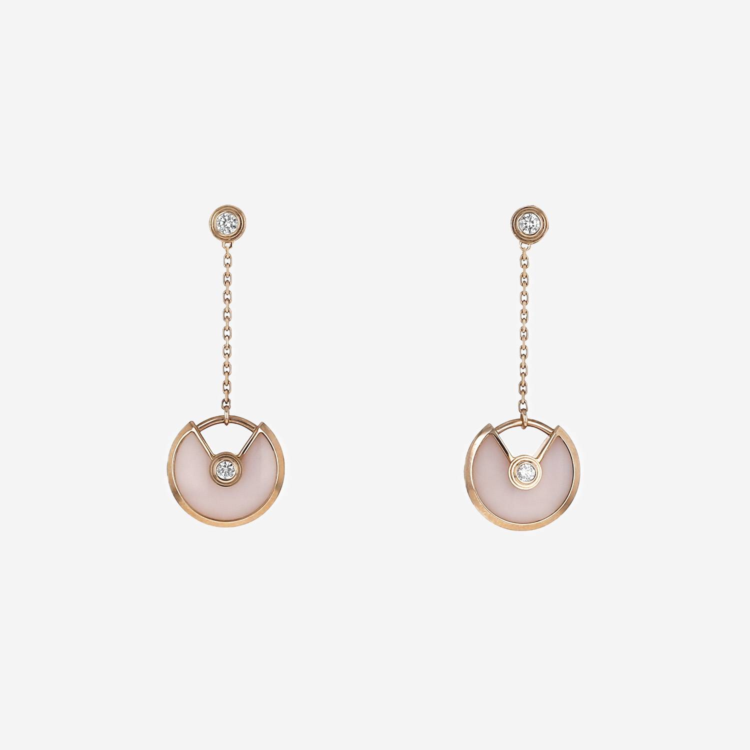 Paire de boucles d'oreilles Cartier Amulette en or rose, diamants et opale rose Ref Collector Square : 43 01 86