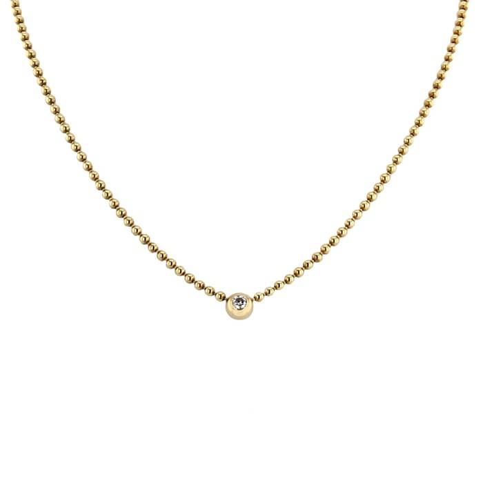 Superbe collier composé d'une succession de perles en or jaune dont une plus importante au centre ornée d'un diamant de taille brillant.