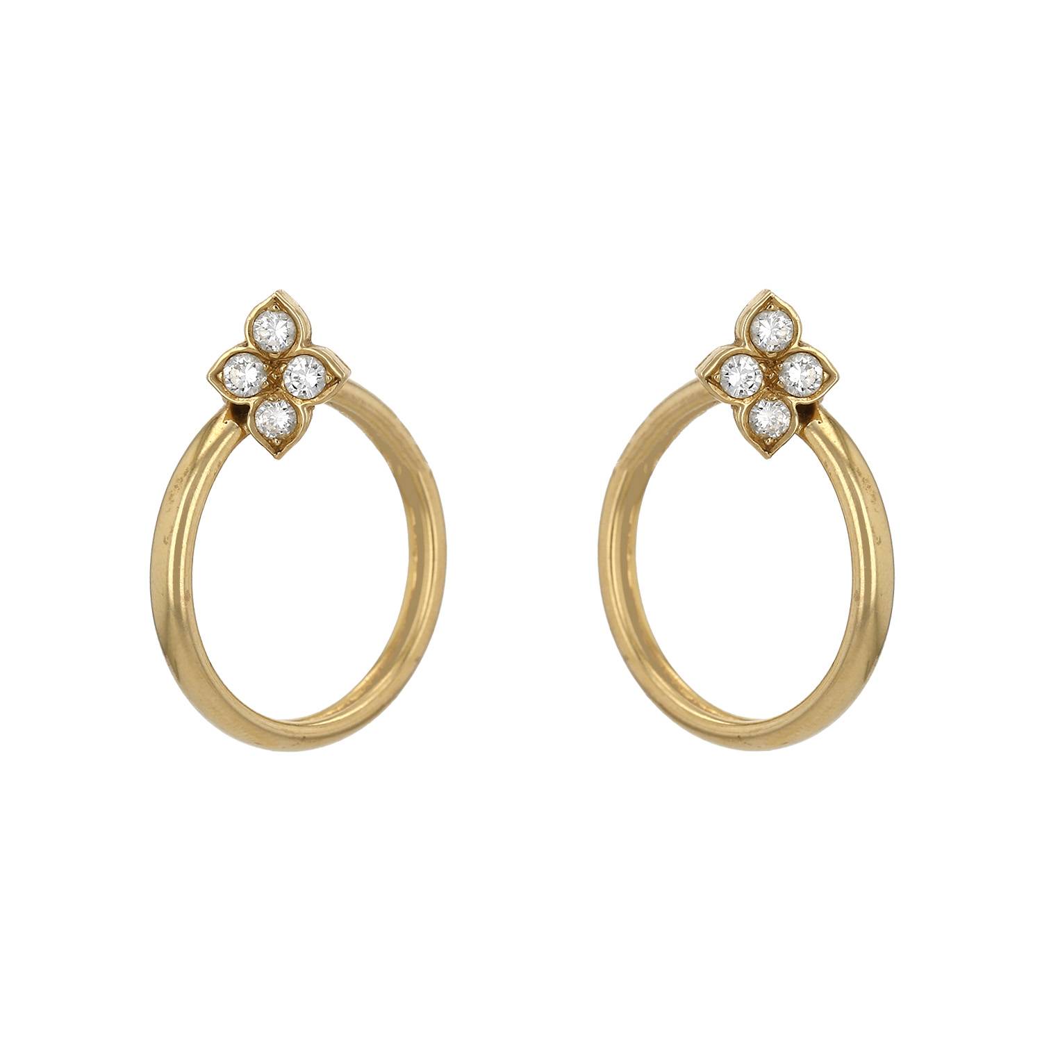 Paire de clips d'oreilles Cartier Inde Mystérieuse en or jaune et diamants, composée de belles motifs ronds, ornée de fleurs délicatement serties de diamants de taille brillant.
