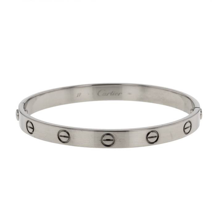 Magnifique bracelet rigide de la collection "Love" en or blanc, composé d'un élégant bandeau gravé.