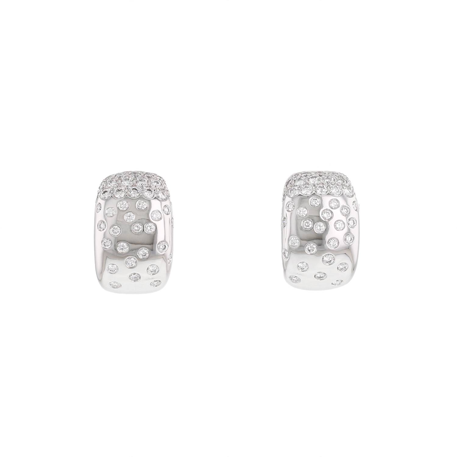 Paire de boucles d'oreilles Cartier Nouvelle Vague en or blanc et diamants, composée de 2 motifs bombés en or blanc finement sertis de diamants de taille brillant 0.58 carat de au total.