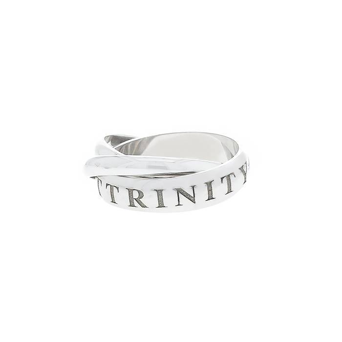 Élégante bague Cartier Or, Amour et Trinity en or blanc, composée de 3 élégants anneaux entrelaçés, ornée de la gravure "Or, Amour et Trinity".