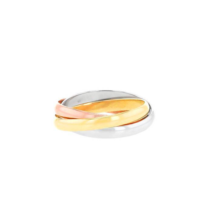 Ravissante bague Cartier Trinity petit modèle en 3 ors, composée de 3 élégants anneaux bombés entrelaçés en or jaune, en or rose et en or blanc.