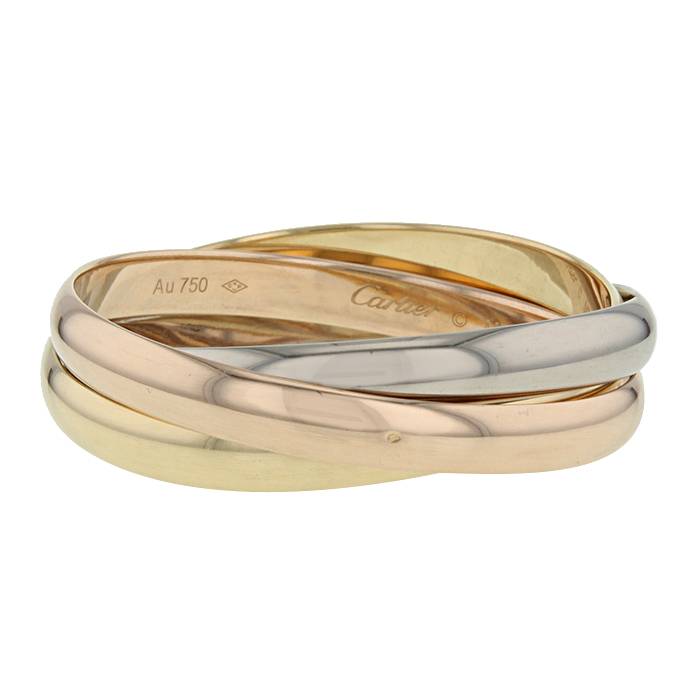 Superbe et indémodable bracelet Cartier Trinity grand modèle en or jaune, en or rose, et en or blanc, composé de 3 importants anneaux bombés entrelaçés.