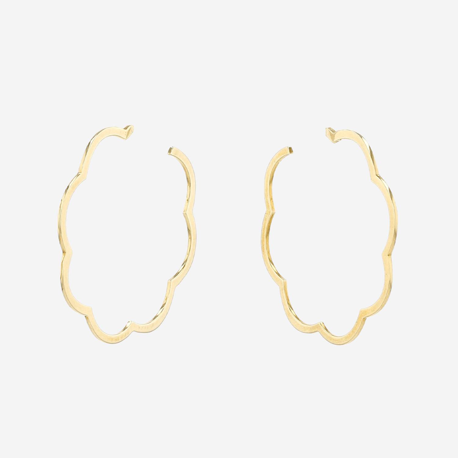 Paire de boucles d'oreilles Chanel Camelia en or jaune, composée de grands anneaux figurant des camélias.
