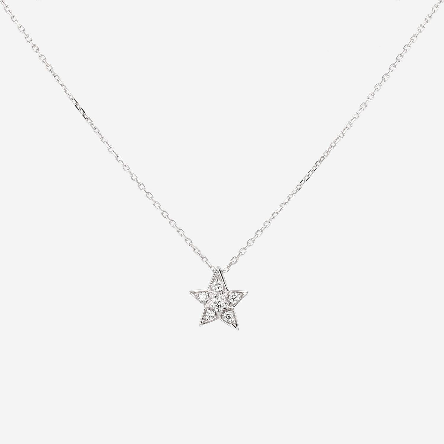 Collier Chanel Comètes petit modèle en or blanc et diamants, figurant une ravissante étoile en or blanc délicatement sertie de diamants de taille brillant 0.22 carat de au total, retenu par une fine chaine en or blanc.