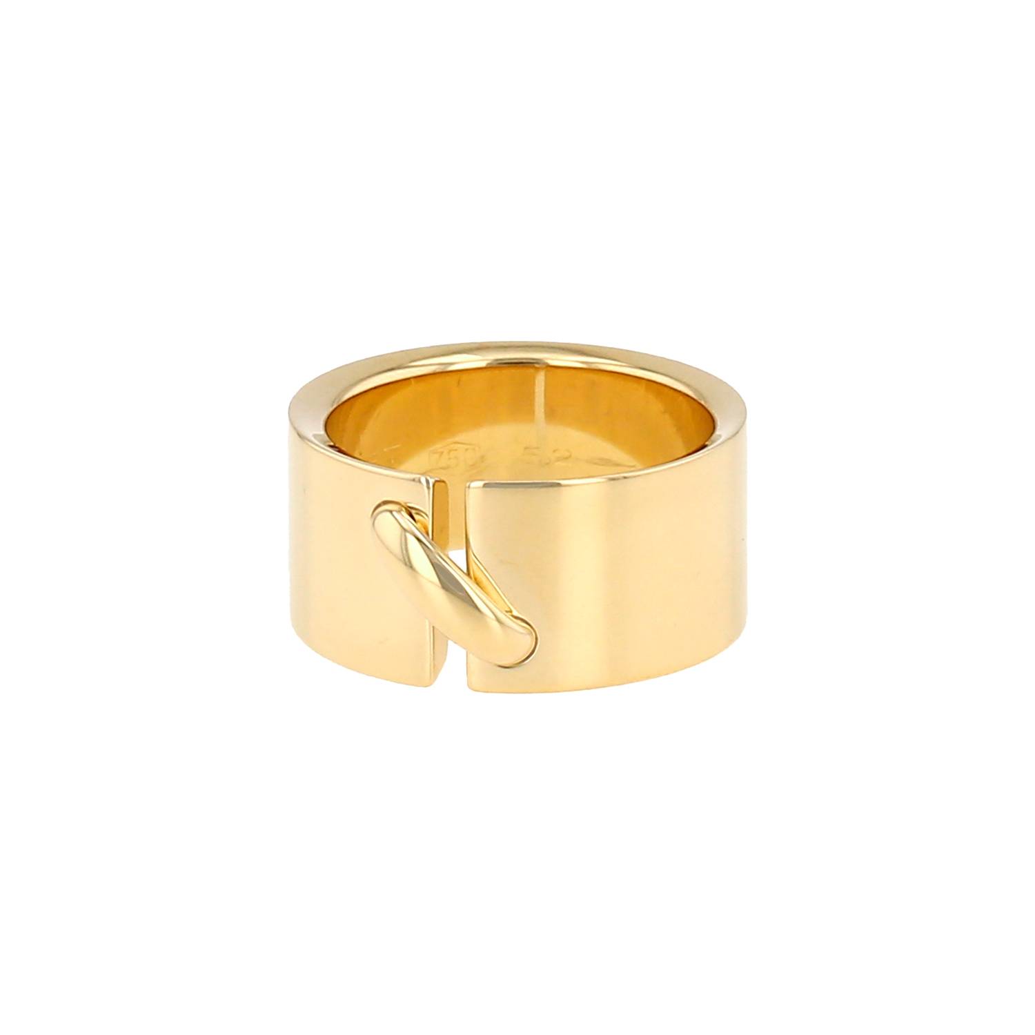Bague Chaumet Lien grand modèle en or jaune, composée d'un élégant bandeau ouvert en or jaune, ornée en son centre d'un fin lien bombé.