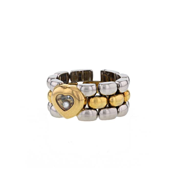 Très belle et originale bague souple de la collection "Happy Diamonds" en or jaune, en acier, et en diamant, composée d'une ravissante maille bombée en or jaune, en acier, ornée en son centre d'un cœur en or jaune, réhaussée d'un délicat diamant mobile.