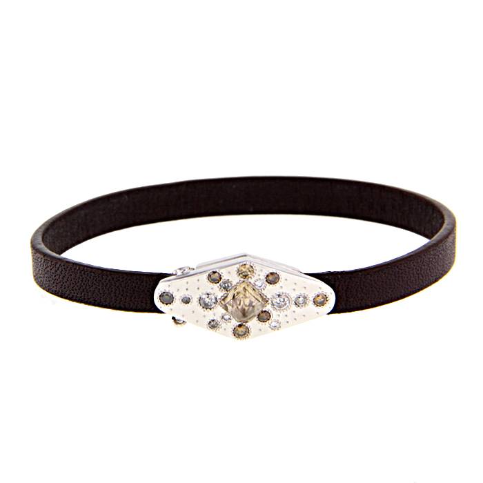 Bracelet De Beers Babylon en or blanc, diamants et cuir marron Ref Collector Square : 32 37 36