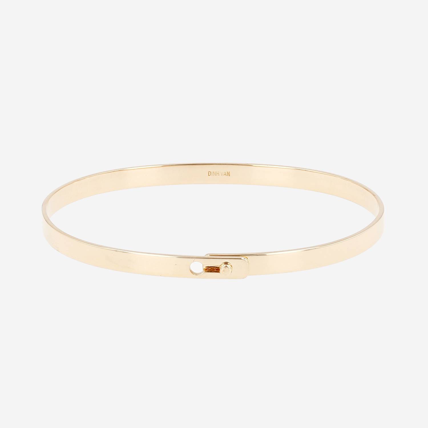 Bracelet rigide ouvrant Dinh Van Serrure en or jaune, composé d'un élégant bandeau lisse en or jaune, réhaussé en son centre d'une délicate serrure.