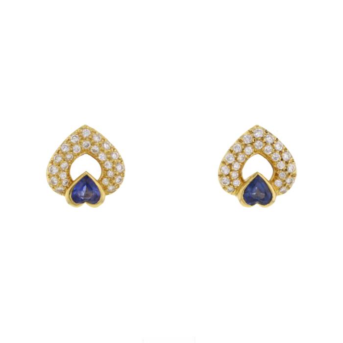 Fred paire de boucles d'oreilles Coeur en or jaune, diamants et saphirs Ref Collector Square : 26 82 84