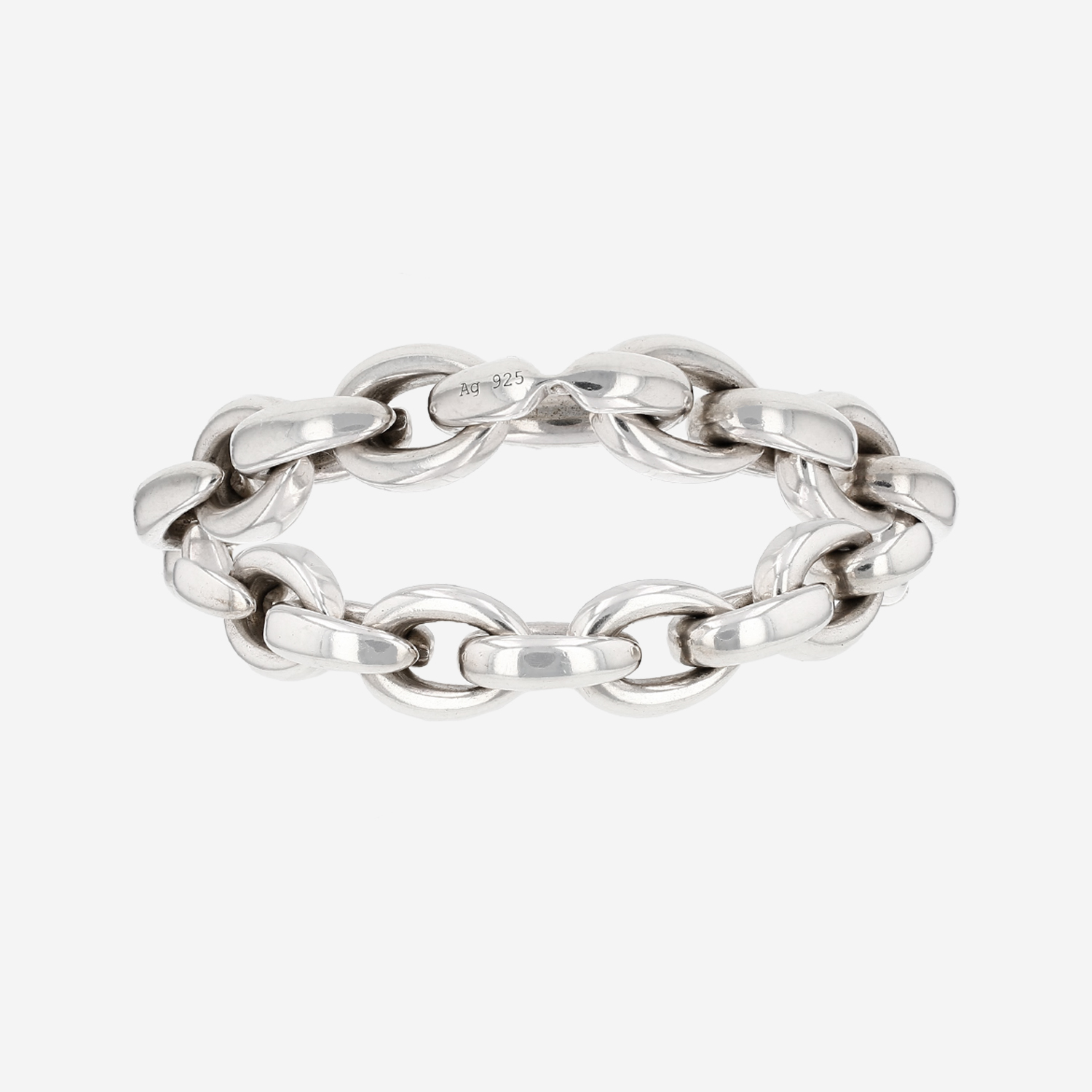 Rare bracelet Hermès Acrobate petit modèle en argent, composé d'une succession de beaux maillons bombés en argent.
