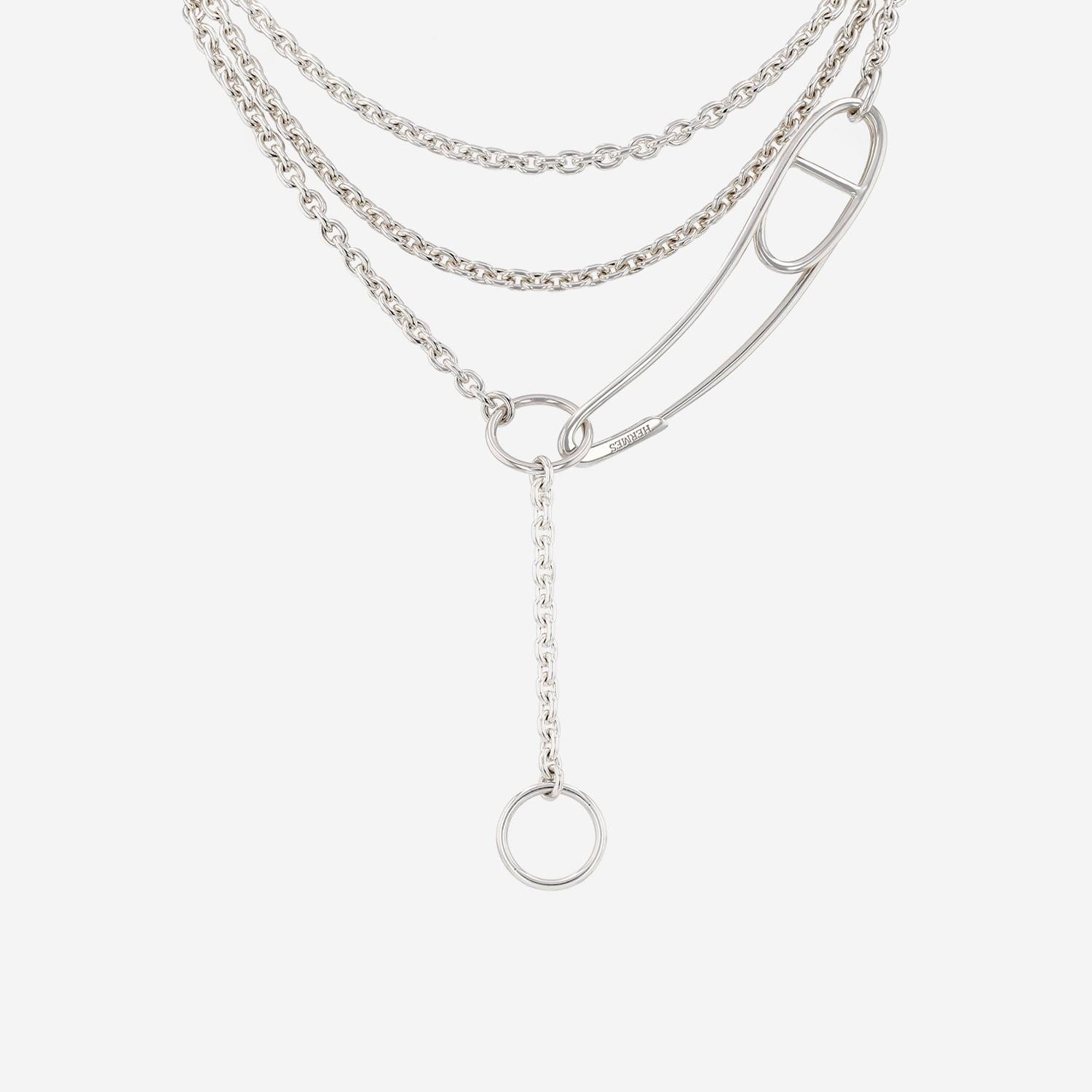 Sautoir Hermès Chaîne d'Ancre Punk en argent, composé d'une belle chaine à maillons ronds en argent, orné d'une importante épingle à nourrice mouvementée ouvrante.