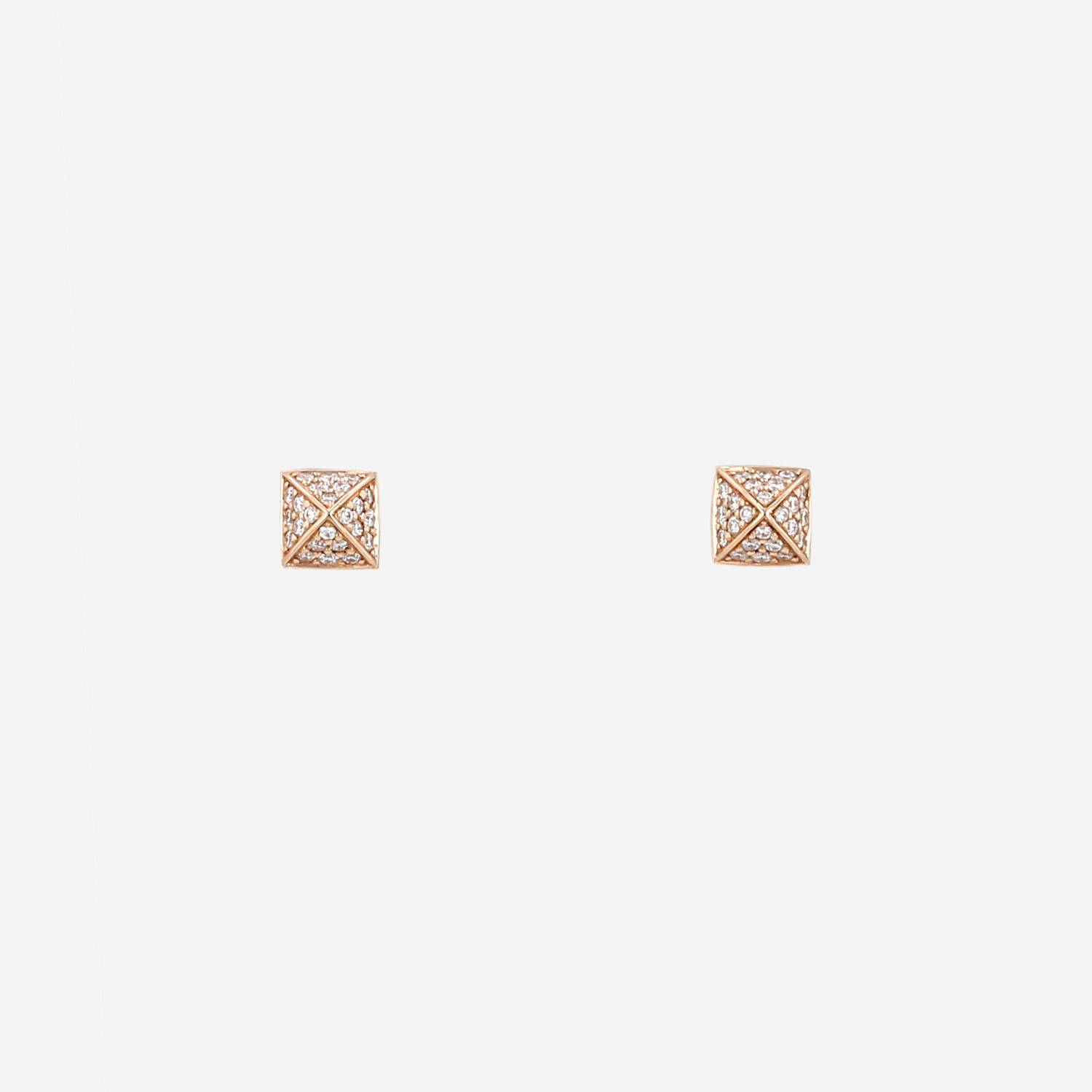 Paire de puces d'oreilles Hermès Clou d'H en or rose et diamants, composée de motifs pyramidales en or rose délicatement sertis de diamants de taille brillant.