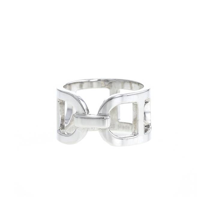 Jolie bague Hermès Ever Chaîne D'ancre en argent, composée d'un anneau géométrique ajouré.