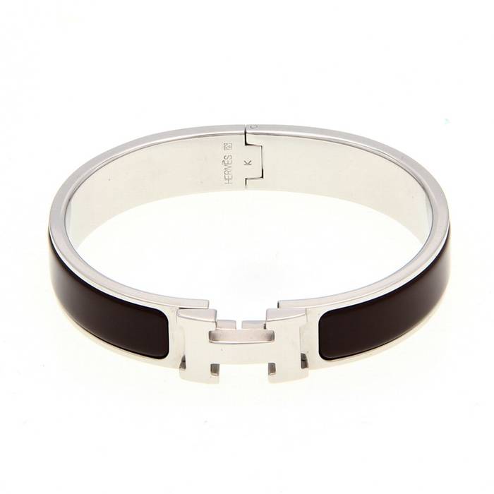 Beau bracelet "Clic Clac H" en palladium et émail chocolat.