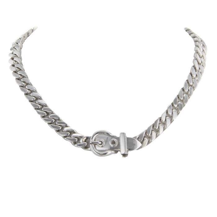 Superbe collier articulé de la collection "Sellier" en argent, stylisant une élégante maille gourmette lisse, orné en son centre d'une belle boucle de ceinture.