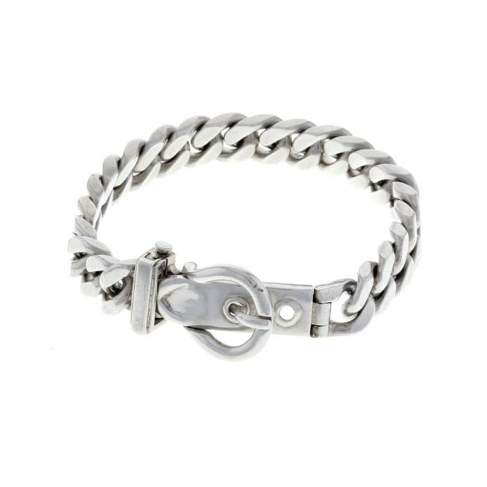 Superbe bracelet en argent de la collection "Sellier" stylisant une ceinture à maille gourmette plate, le fermoir formant une boucle.