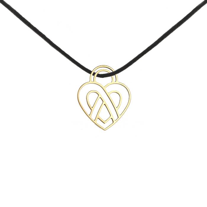 Ravissant pendentif Poiray Coeur Fil grand modèle en or jaune, stylisant un délicat cœur ajouré en or jaune, retenu par un élégant cordon en nylon noir.