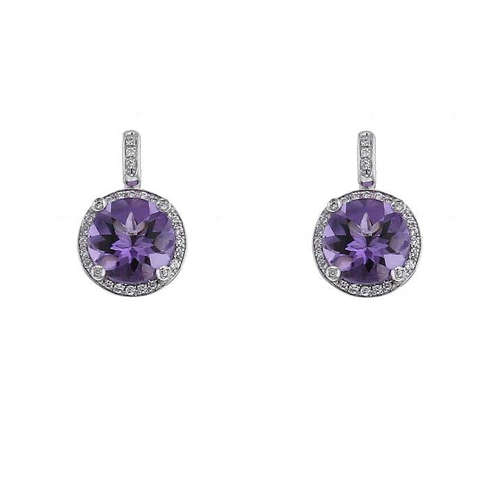 Superbe paire de boucles d'oreilles Poiray Fille Cabochon en or blanc, en améthystes, et en diamants, composée de 2 sublimes améthystes de taille ronde au total 5.30 carats, réhaussée d'une très belle monture ronde délicatement sertie de diamants de taille brillant.