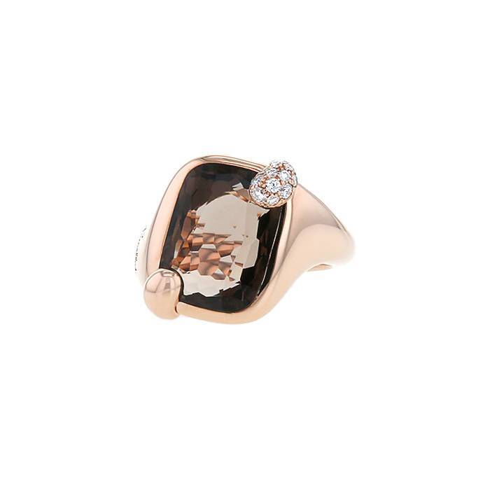 Bague Pomellato Ritratto petit modèle en or rose, quartz fumé et diamants Ref Collector Square : 36 90 44