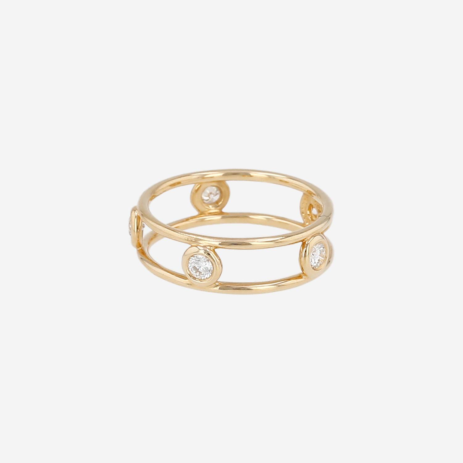 Bague Tiffany & Co Diamonds By The Yard en or jaune et diamants, composée d'un délicat bandeau ajouré en or jaune, ornée de 5 diamants de taille brillant pesant au total 0.25 carat.