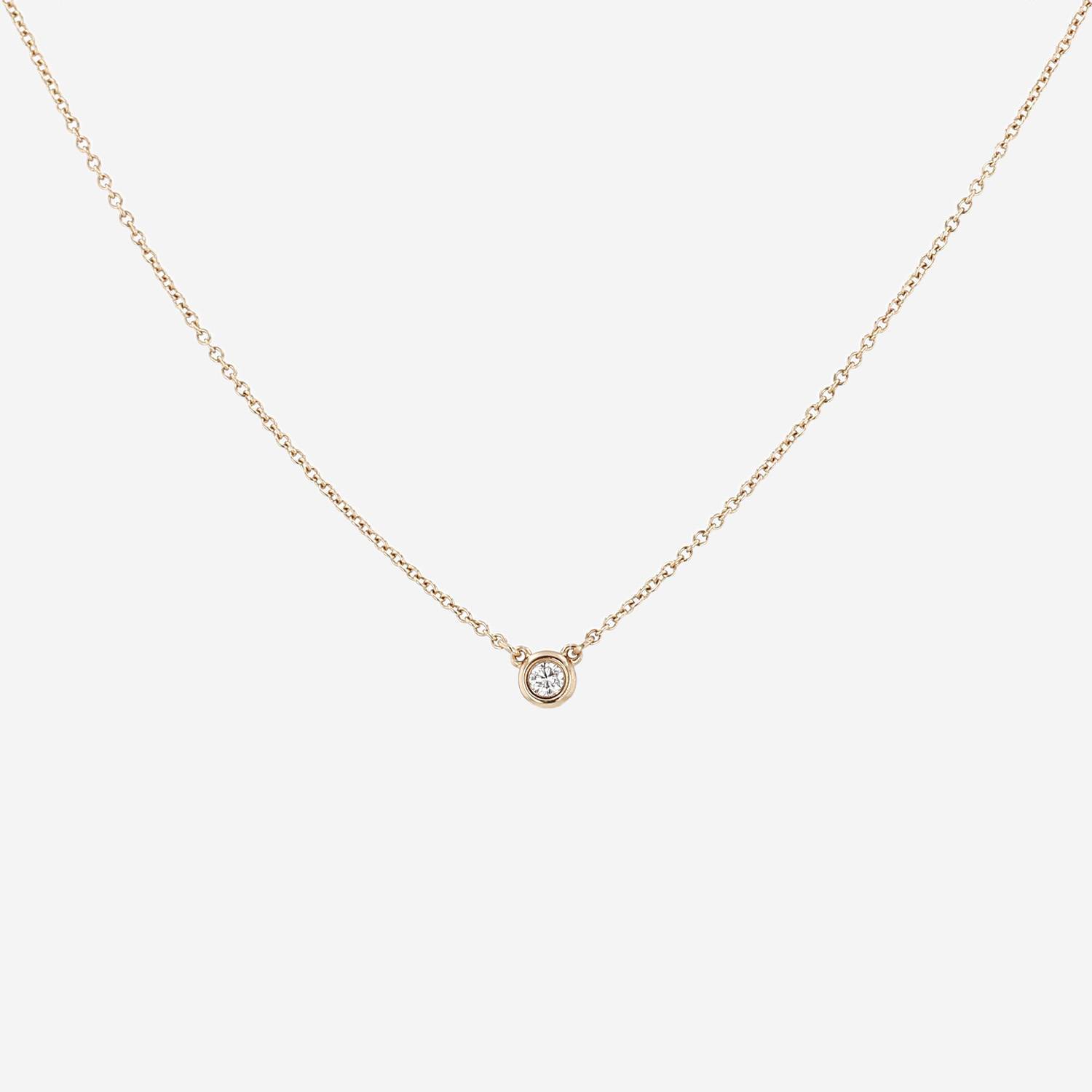 Collier Tiffany & Co Diamonds By The Yard en or rose et diamant, composé d'une délicate chaine en maille jaseron en or rose, retenant en son centre un très beau diamant de taille brillant pesant au total 0.07 carat délicatement serti clos.