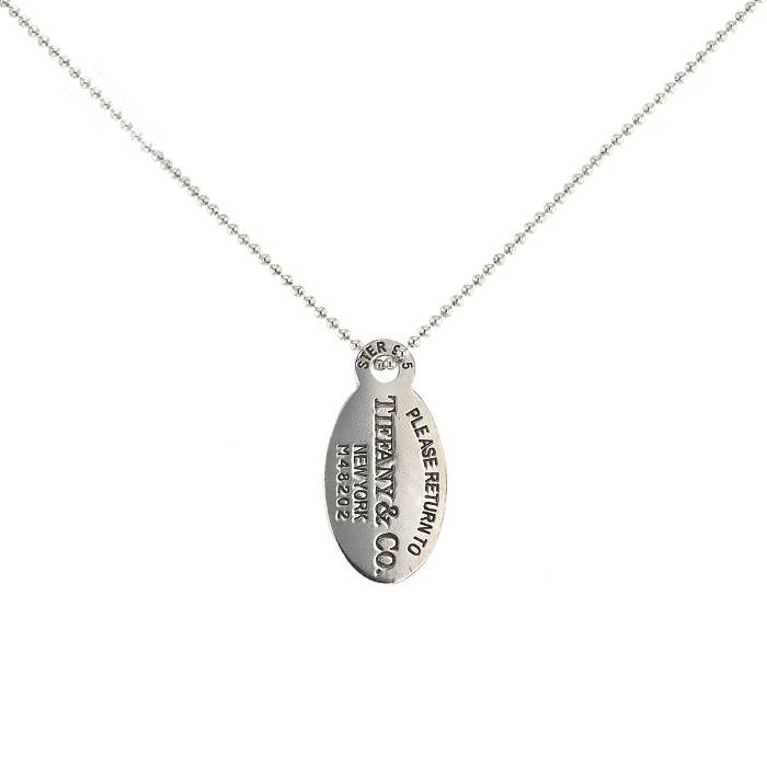 Charmant sautoir Tiffany & Co Return To Tiffany en argent, composé d'une élégante plaque ovale gravée "Please Return To Tiffany & Co New York, retenu par une très belle chaine en argent.