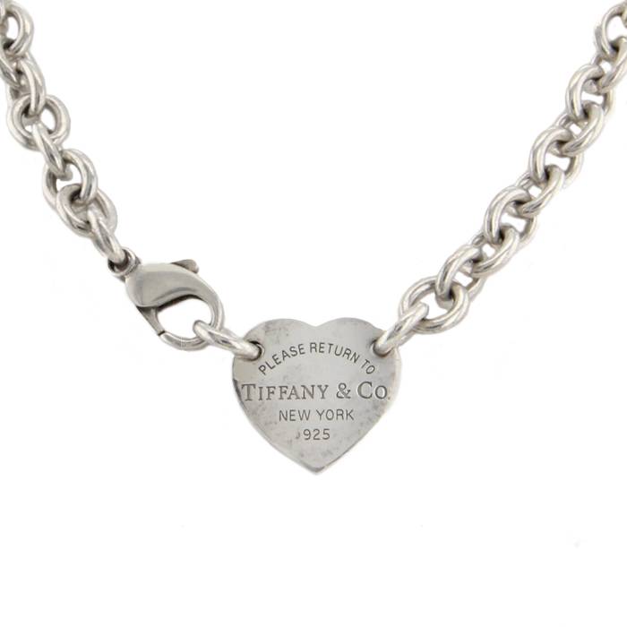 Charmant collier de la collection "Return To Tiffany" en argent, composé d'une élégante maille ronde, orné en son centre d'un délicat cœur gravé Please return to Tiffany & Co New York.