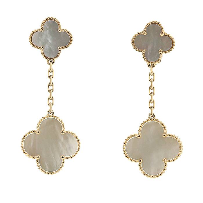 Paire de pendants d'oreilles Van Cleef & Arpels Magic Alhambra en or jaune et nacre blanche Ref Collector Square : 33 89 09