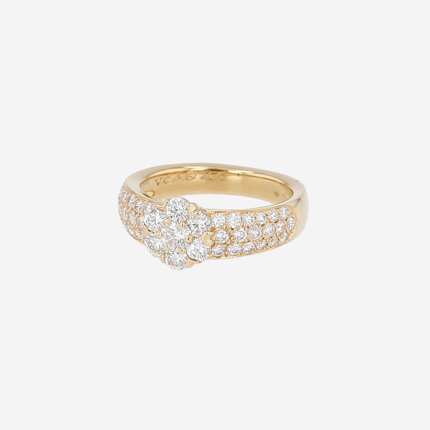 Bague Van Cleef & Arpels en or jaune et diamants, composée d'une monture figurant une fleur en or jaune délicatement sertie de diamants de taille brillant d'environ 1.20 carat au total.