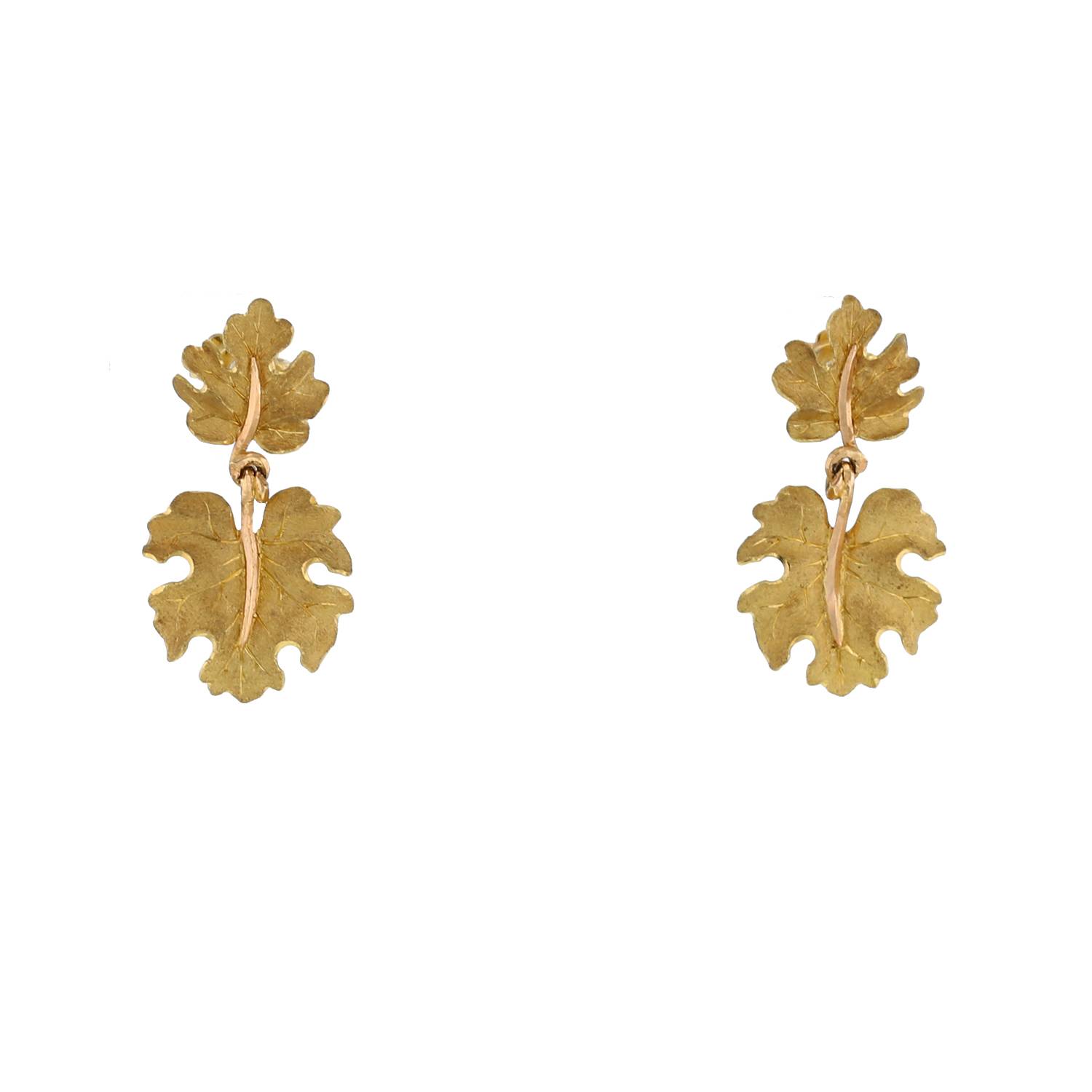 Articulated Buccellati earrings in yellow gold, including of the wavy leaves in yellow gold.