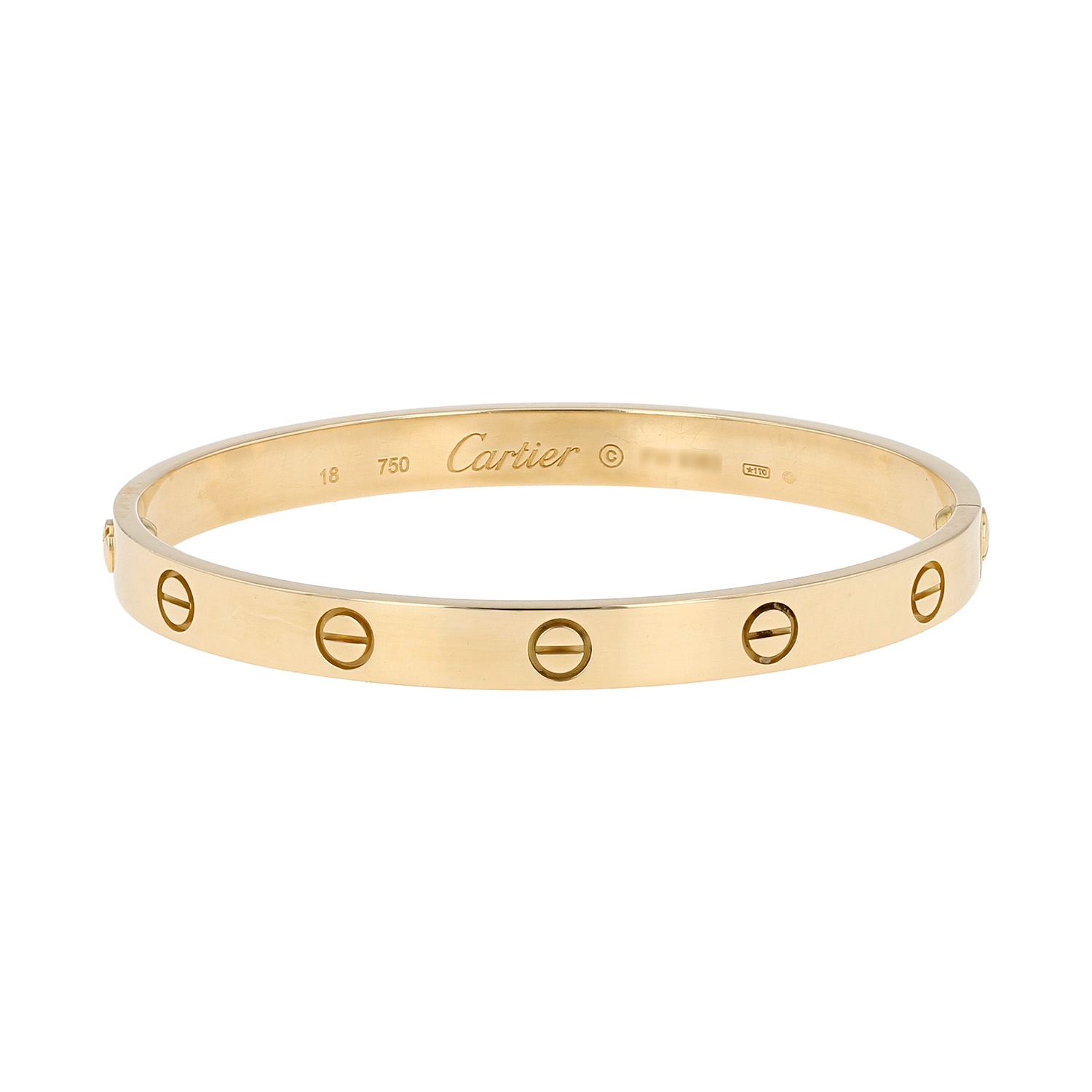Cartier Love bracelet in yellow gold, composed of one elegant smooth sleeve, decorated with of engraved screw patterns.
