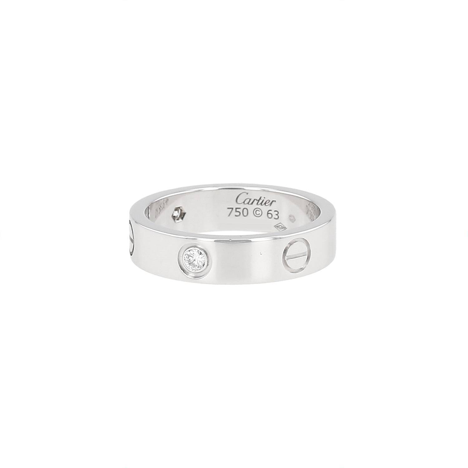 Cartier Love ring in white gold and diamonds, composed of one elegant smooth sleeve, decorated with of engraved screw patterns, enhanced of brilliant cut diamonds about 0.22 carat.