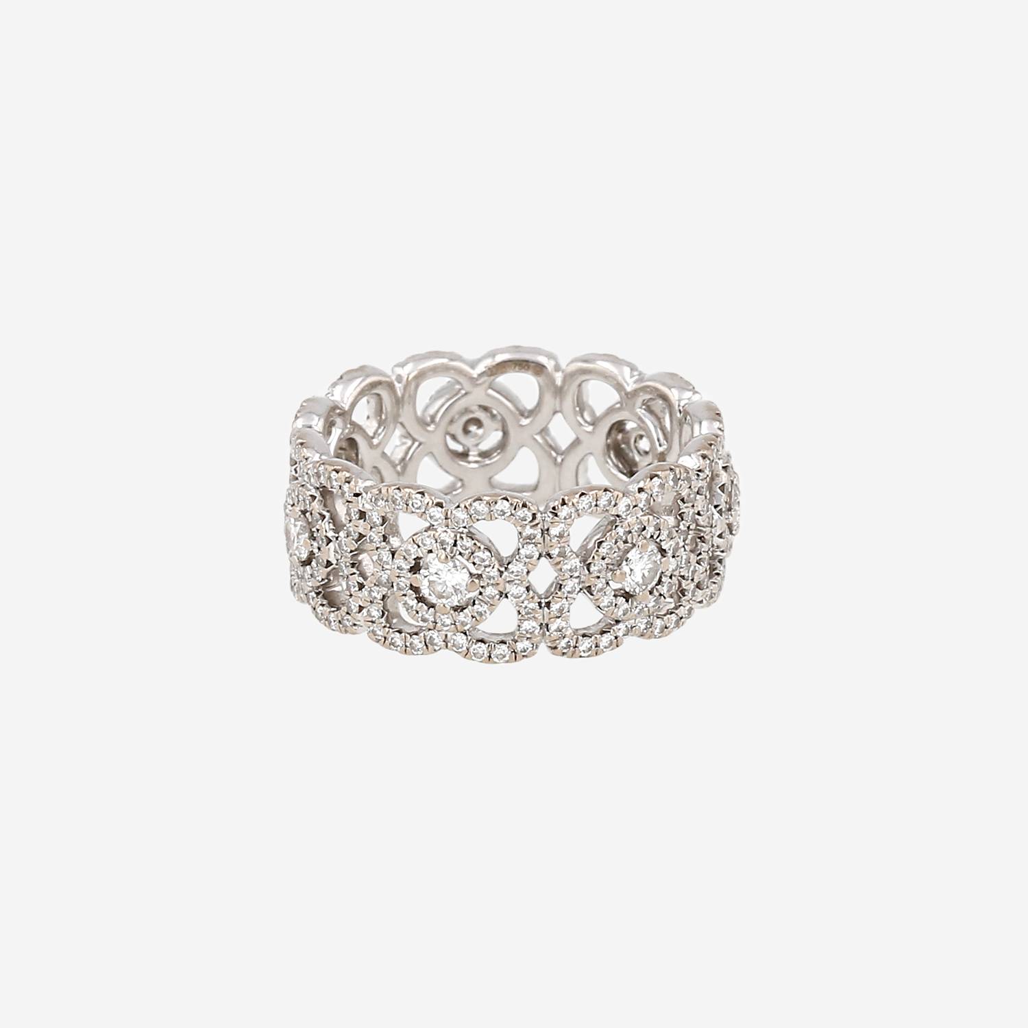 Delicate De Beers Enchanted Lotus ring in white gold and diamonds, composed of of a series of lovely hemstitched flowers in white gold completely set with of brilliant cut diamonds about 1.2 carat.