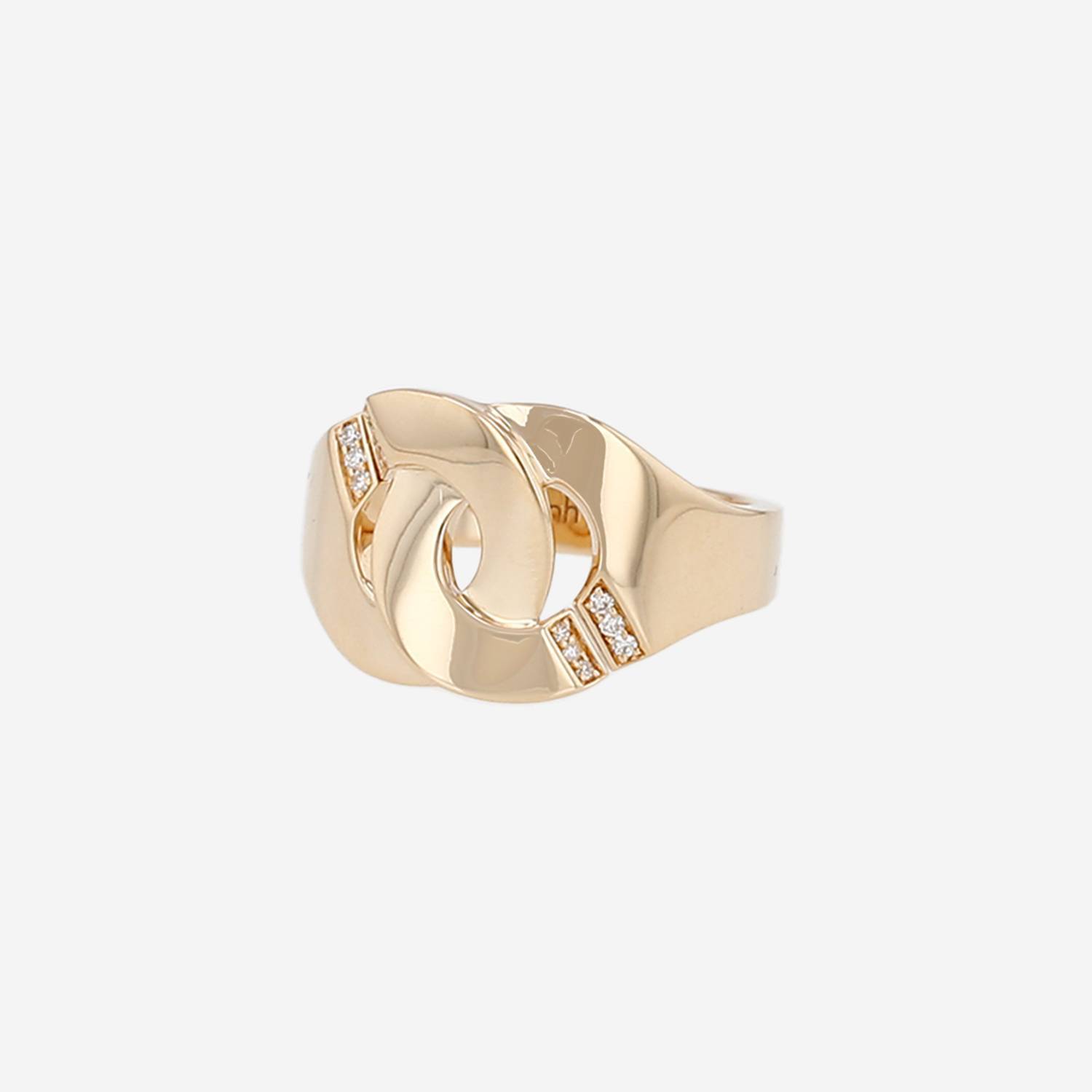 Dinh Van Menottes R12 ring in yellow gold and diamonds, composed of one elegant pair of handcuffs in yellow gold in its center delicately set with of brilliant cut diamonds about 0.05 carat.