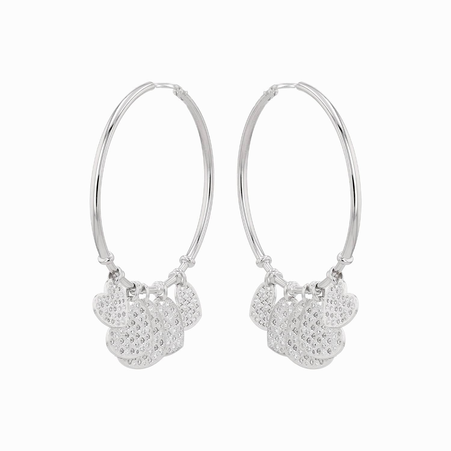 Dior Coeurs Légers hoop earrings in white gold and diamonds, composed of of important earhoops in white gold, decorated with of a series of mobile hearts in white gold delicately set with of brilliant cut diamonds.