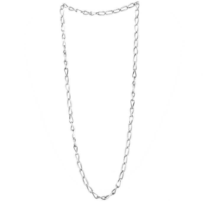 Superb long necklace in silver, composed of an alternating of very nice twisted links.