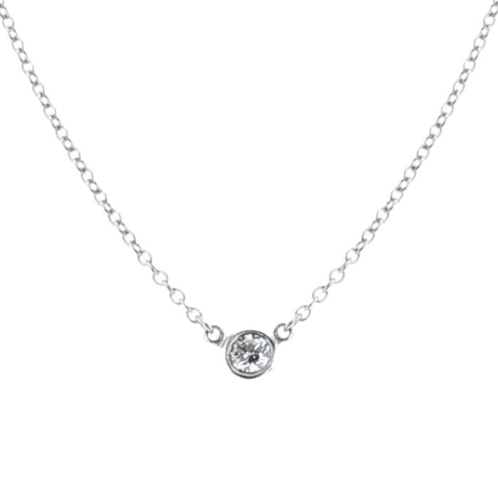 Tiffany & Co Diamonds By The Yard necklace in platinium and diamond, composed of one delicate chain in platinium, holding a beautiful diamond brilliant cut weighting about 0.08 carat in its center.