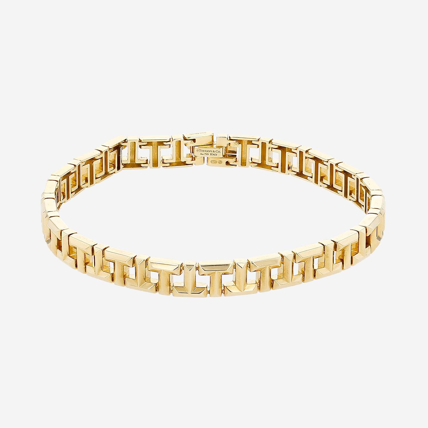 Tiffany & Co Tiffany T Narrow bracelet in yellow gold, composed of of a series of small geometric articulated letters T in yellow gold.