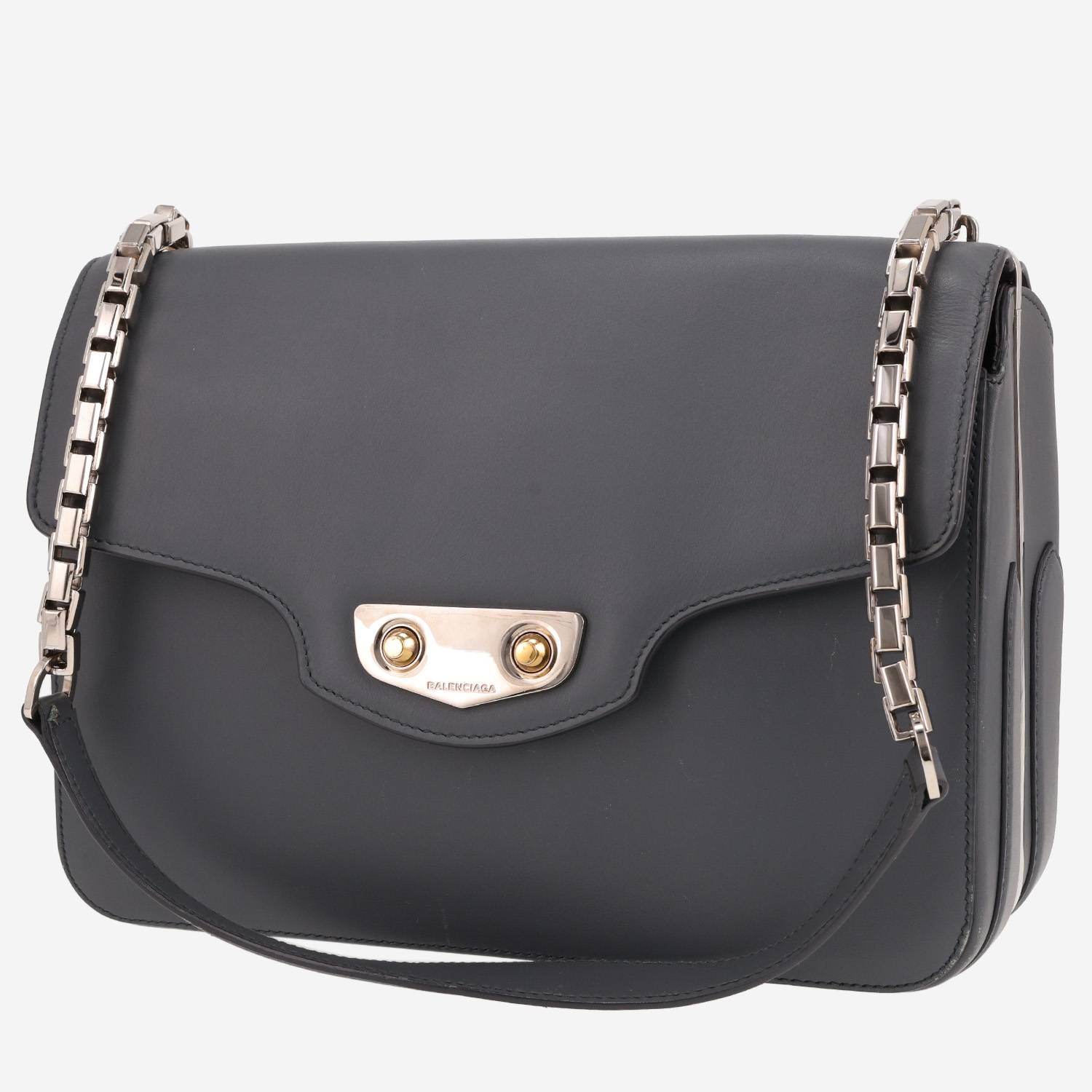 Splendid Balenciaga Neo Classic handbag in grey leather, hardware in silver metal, one handle in silver metal allowing the bag to be worn in the hand or on the shoulder.