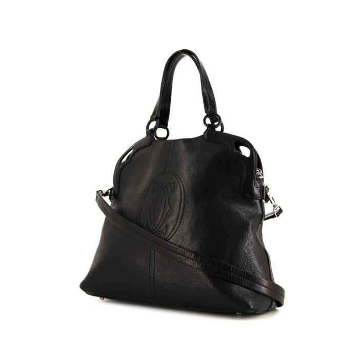 Practical Cartier handbag Marcello in black grained leather, hardware in blackened metal, double handle in black leather, black leather removable strap to be worn accross the body allowing the bag to be worn in the hand or on the shoulder or accross the body.