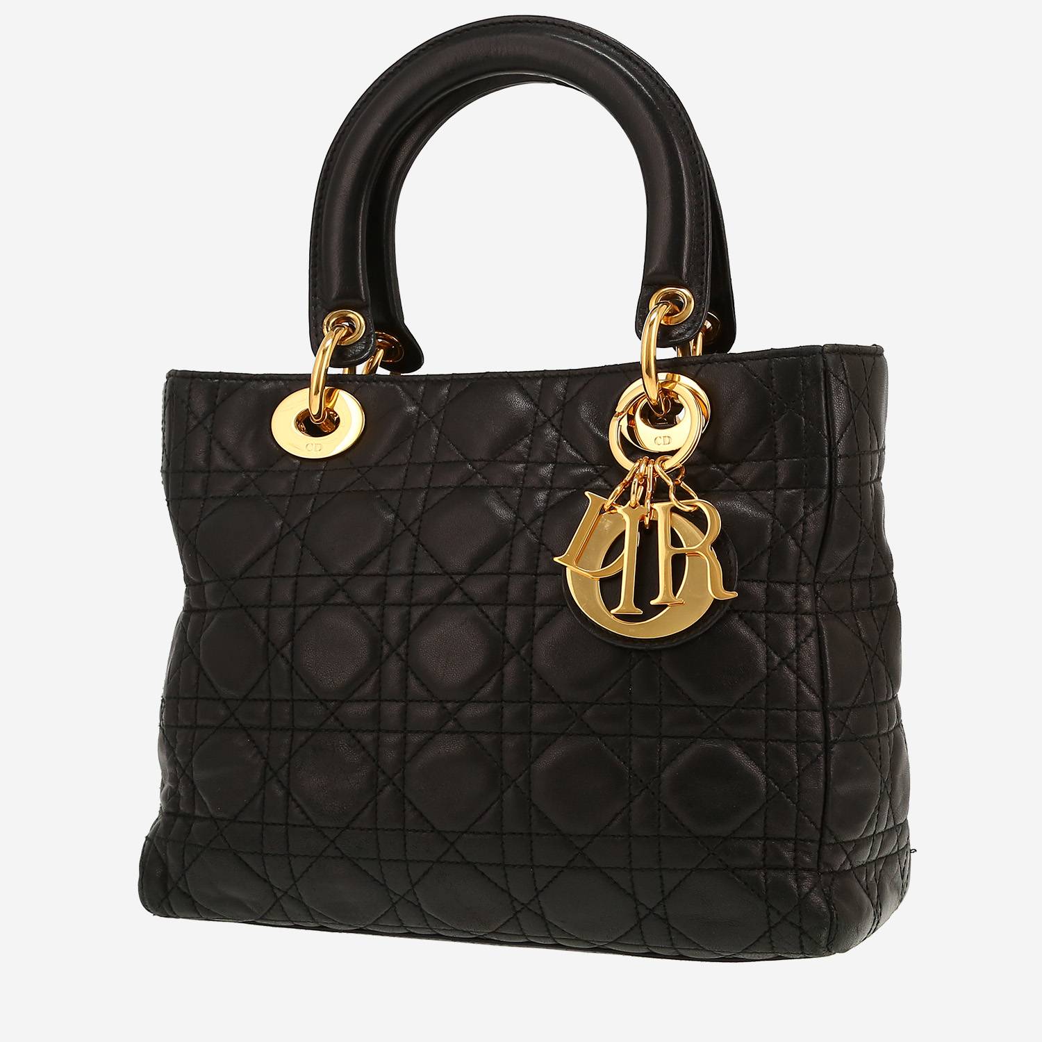 Unavoidable Dior Lady Dior handbag in black leather cannage, hardware in gilt metal, double handle in black leather allowing the bag to be worn in the hand.