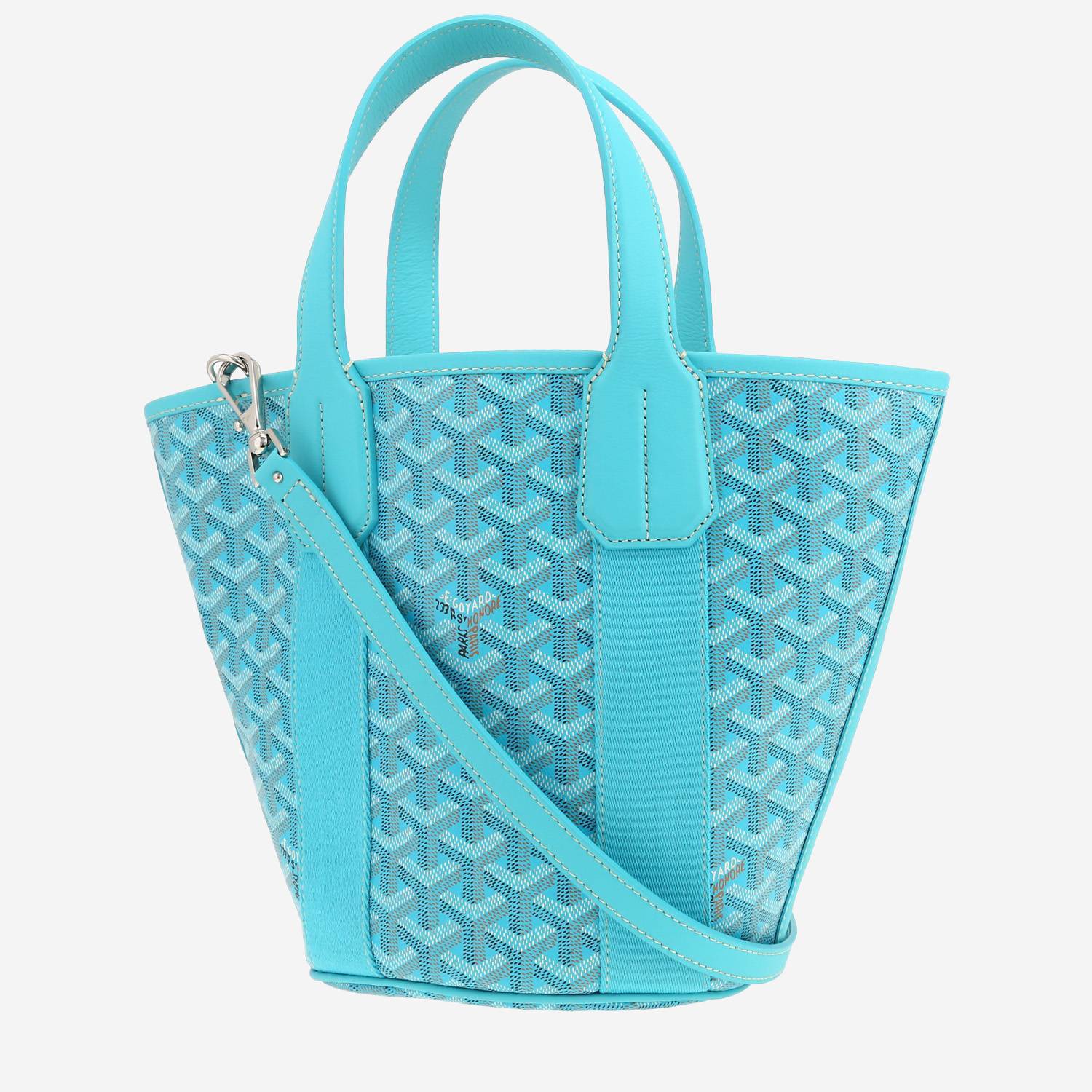 Wonderful Goyard Belharra handbag in turquoise Goyard canvas, hardware in silver metal, double handle in turquoise leather, turquoise leather removable strap to be worn accross the body allowing the bag to be worn in the hand or on the shoulder or accross the body.