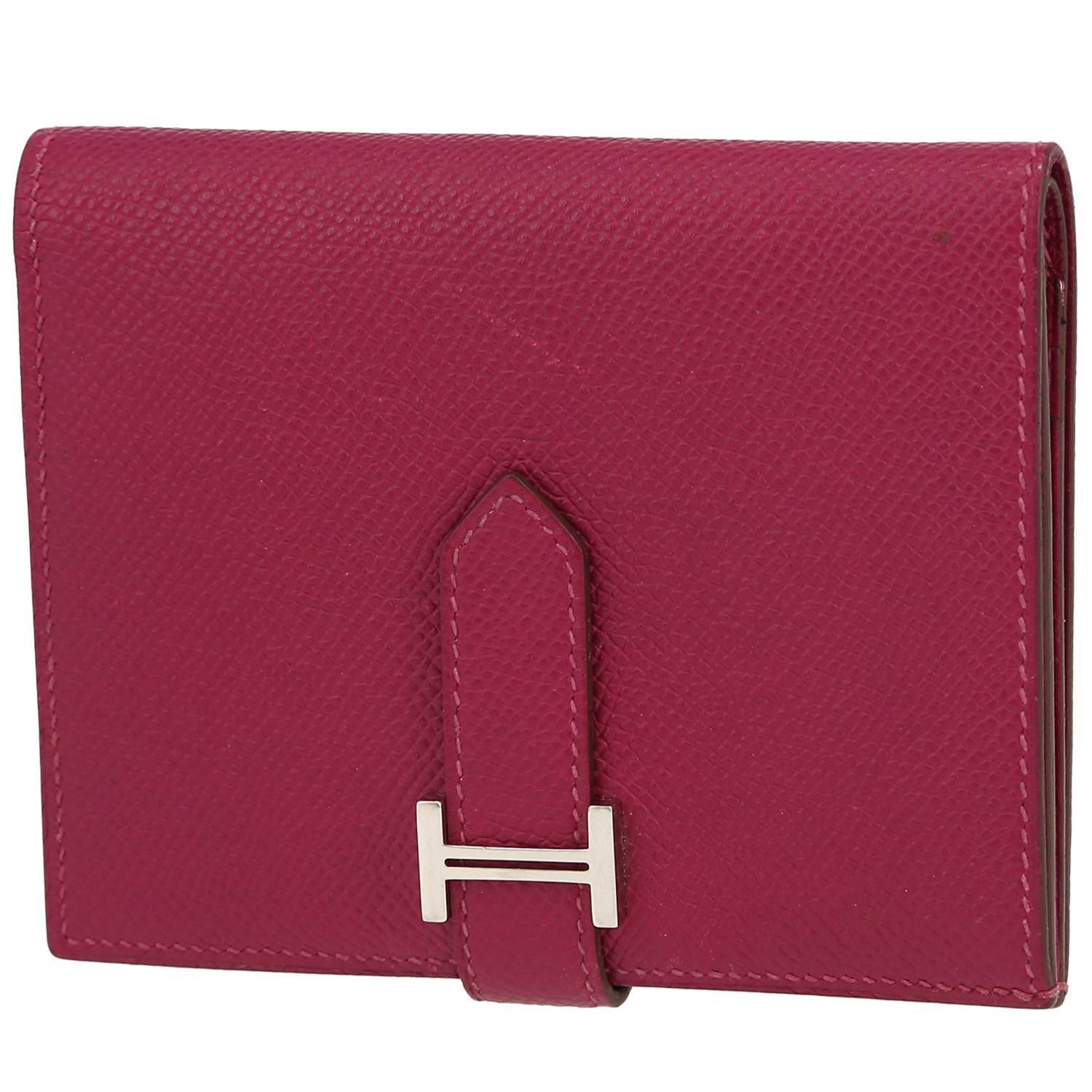 Lovely Hermès Portefeuille wallet in fuchsia epsom leather, hardware in palladium metal.
